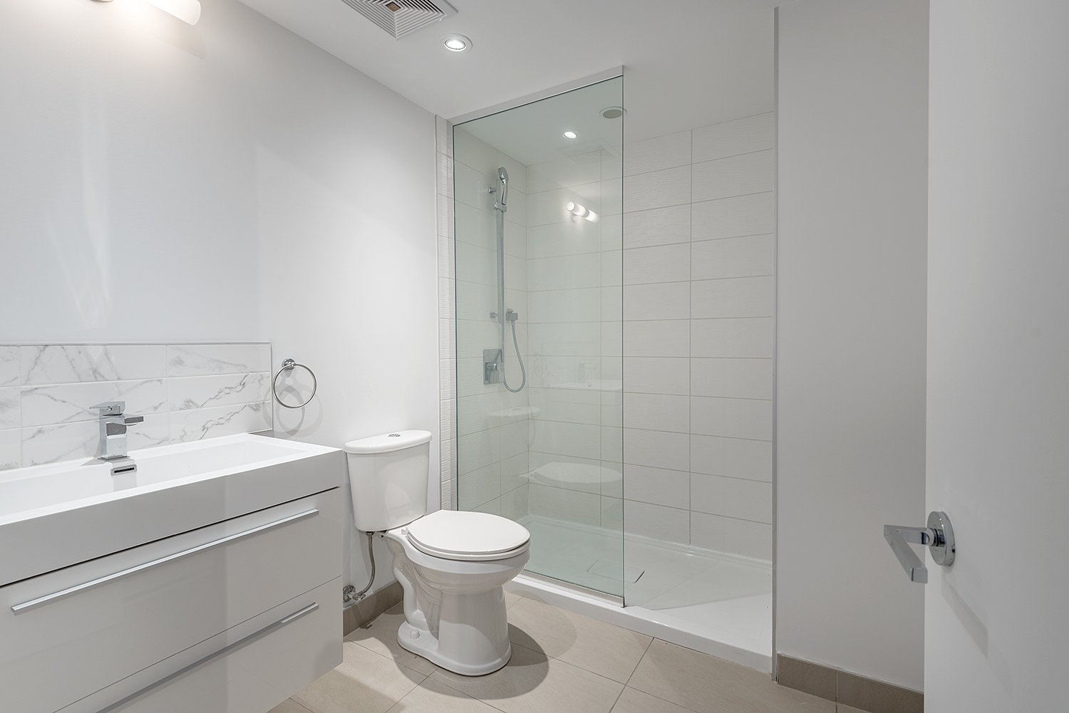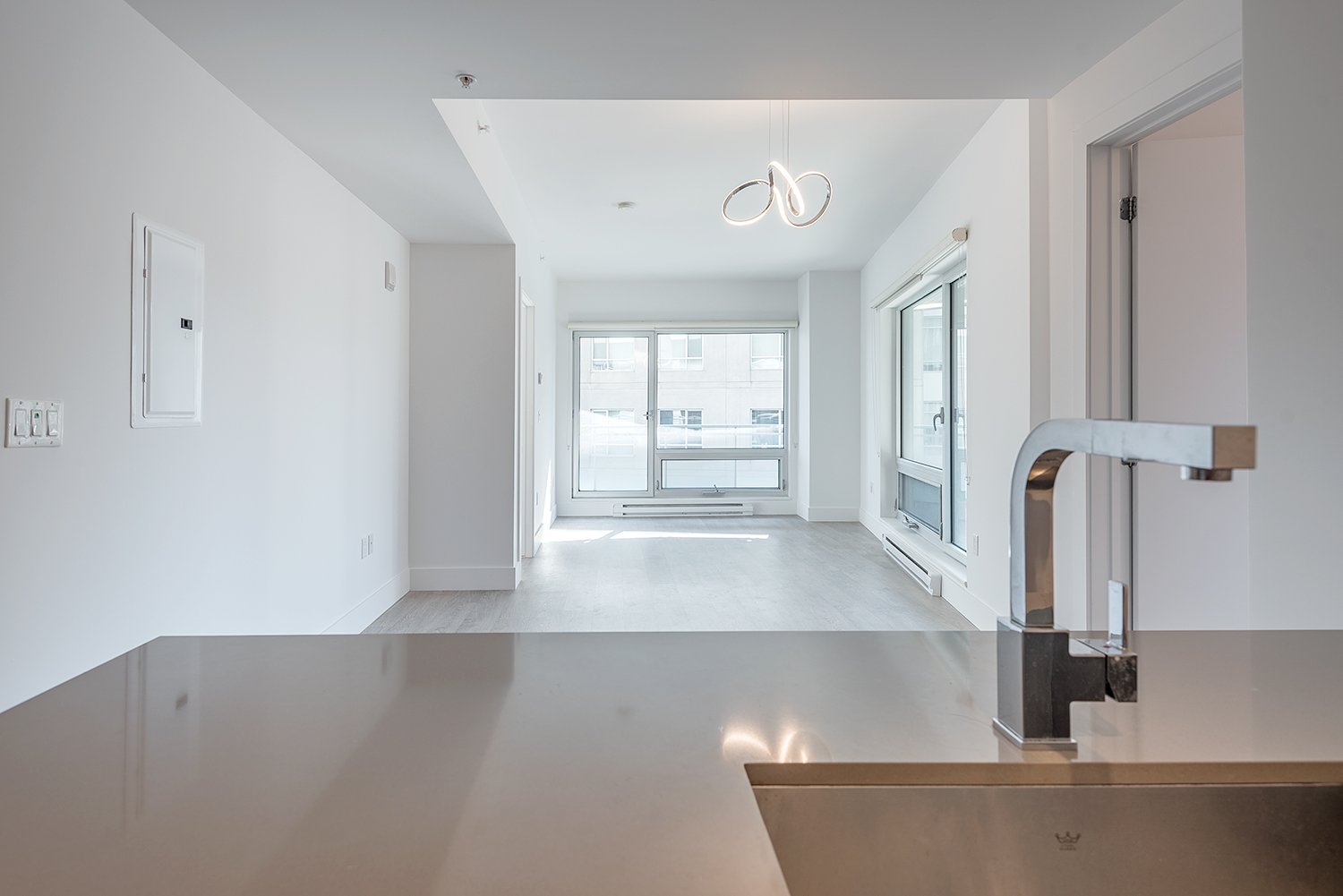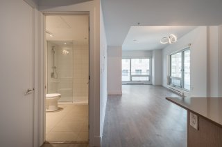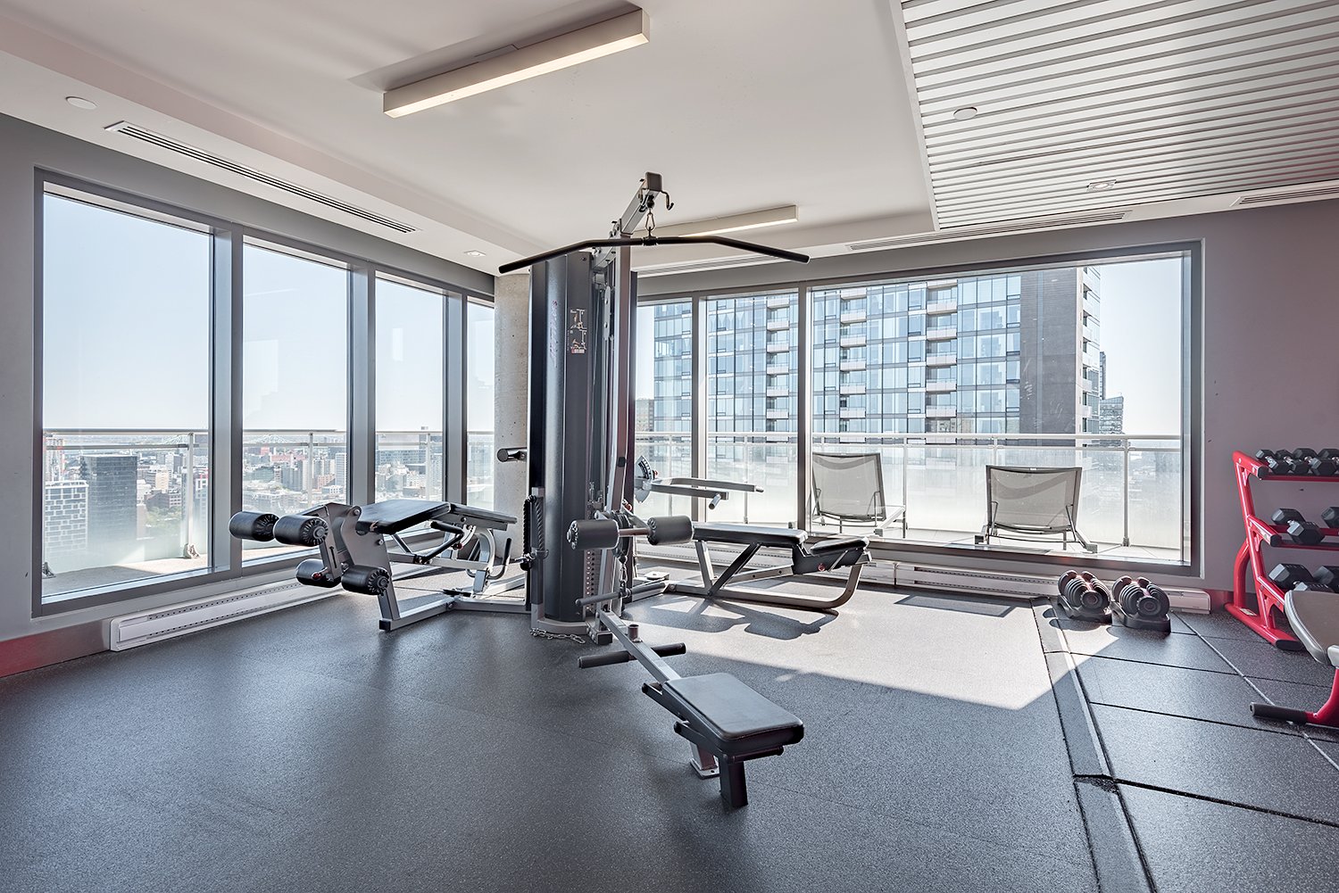 Les Condos Peterson: stunning condo in the heart of the Quartier des Spectacles. Perched on the 17th floor, it offers breathtaking views of the city thanks to abundant windows on two sides and a spacious open-concept living area flooded with natural light. Two closed bedrooms and two elegant bathrooms with glass shower and separate bathtub. Expansive private 360 sqft wraparound balcony to admire the city skyline. Indoor garage (+$60,000) and storage space included. Enjoy the building's exceptional amenities: large rooftop terrace, fitness room, piano lounge, game room, bike workshop, 24/7 security, and close proximity to Place-des-Arts metro!