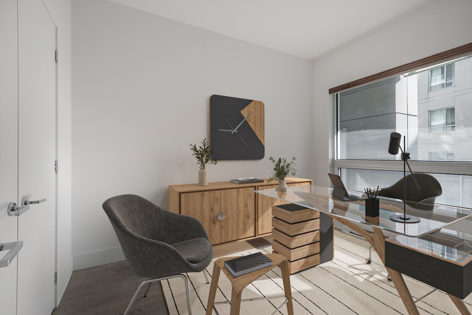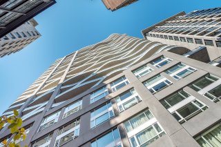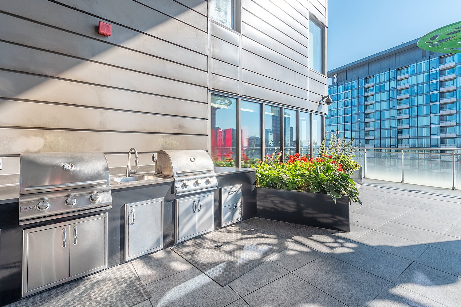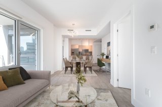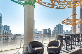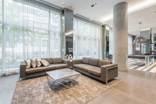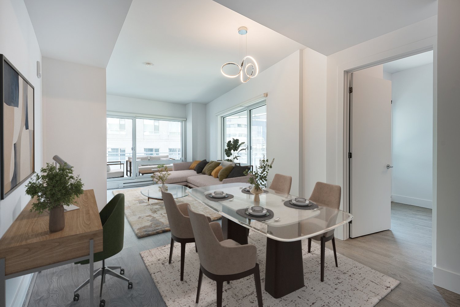 Les Condos Peterson: stunning condo in the heart of the Quartier des Spectacles. Perched on the 17th floor, it offers breathtaking views of the city thanks to abundant windows on two sides and a spacious open-concept living area flooded with natural light. Two closed bedrooms and two elegant bathrooms with glass shower and separate bathtub. Expansive private 360 sqft wraparound balcony to admire the city skyline. Indoor garage (+$60,000) and storage space included. Enjoy the building's exceptional amenities: large rooftop terrace, fitness room, piano lounge, game room, bike workshop, 24/7 security, and close proximity to Place-des-Arts metro!