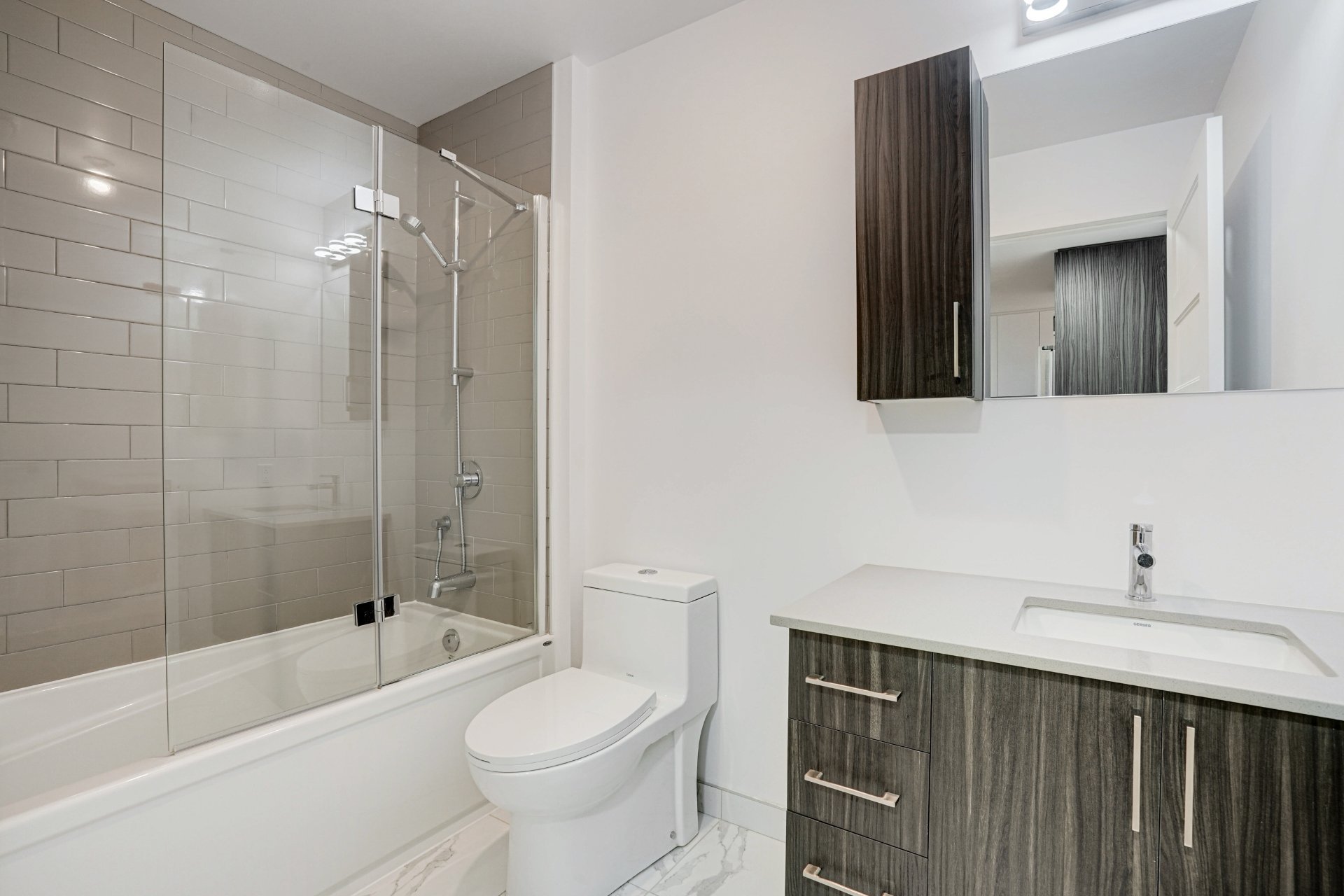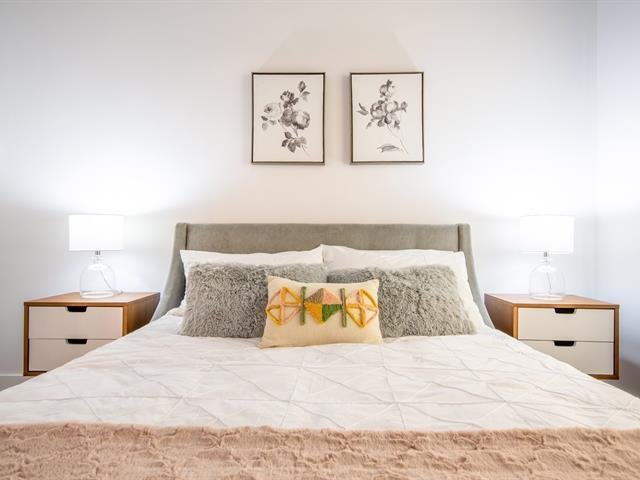 This charming one-bedroom condo for sale in the Saint-Léonard is a perfect opportunity for those seeking a peaceful and comfortable living space. Located in an area close to all amenities, this condo features a cozy bedroom, an open-style functional kitchen, a modern bathroom, and a welcoming living space. It's an ideal choice for individuals or couples looking for a peaceful retreat in a new building. Don't miss the chance to make this condo your new home!