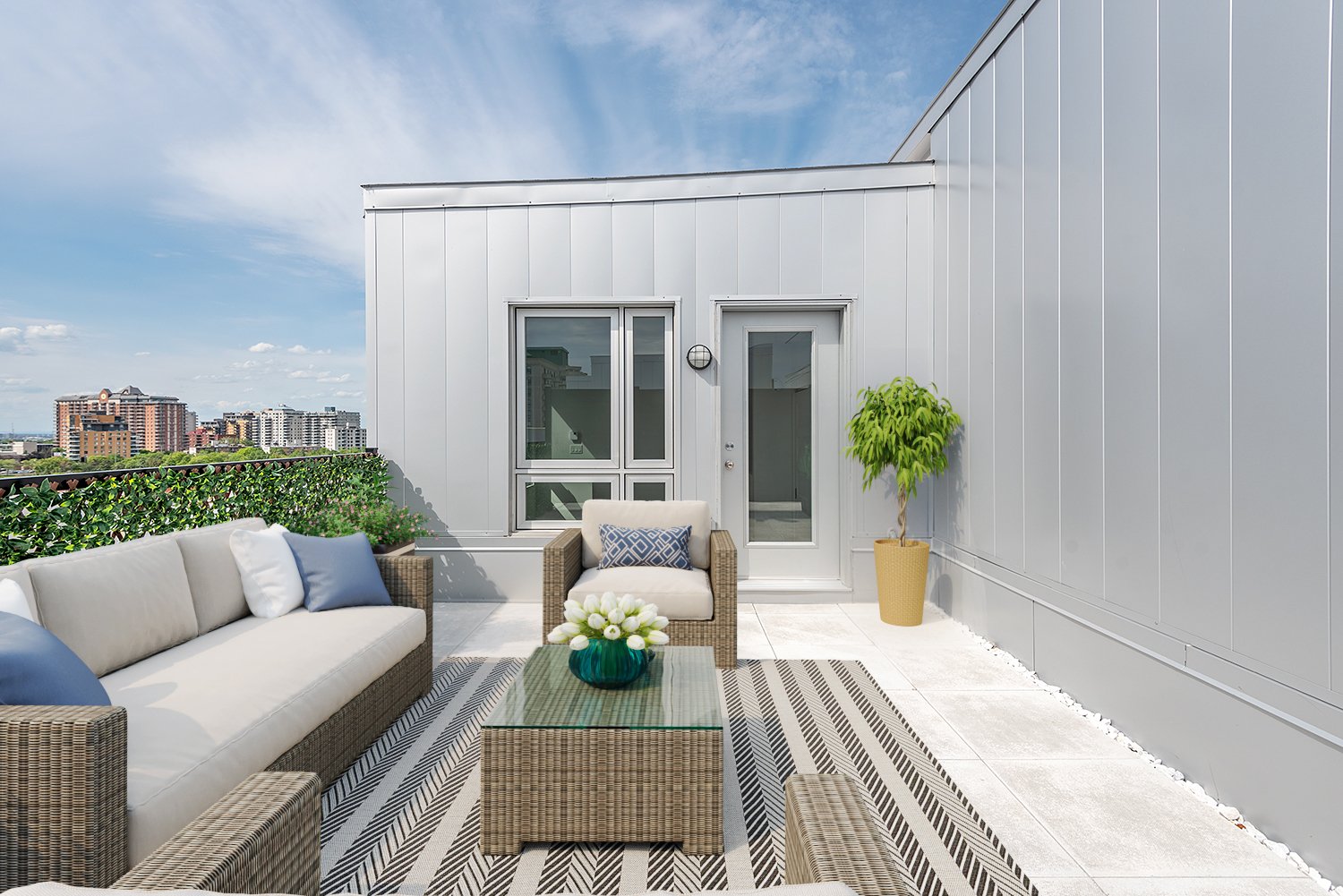 - Shared rooftop terrace with an attached lounge area