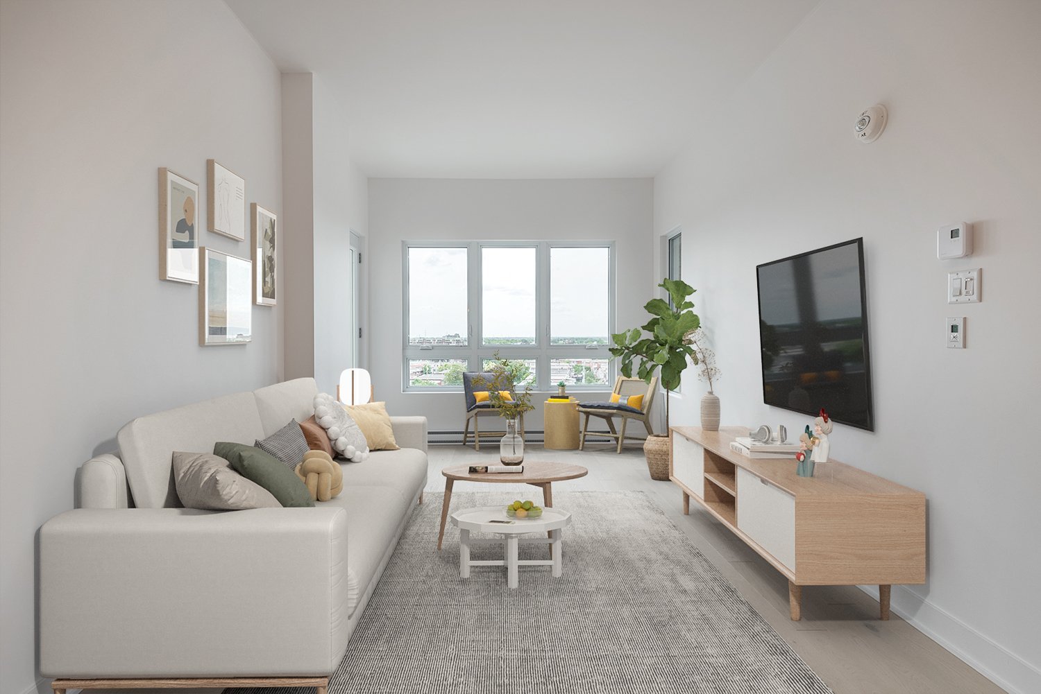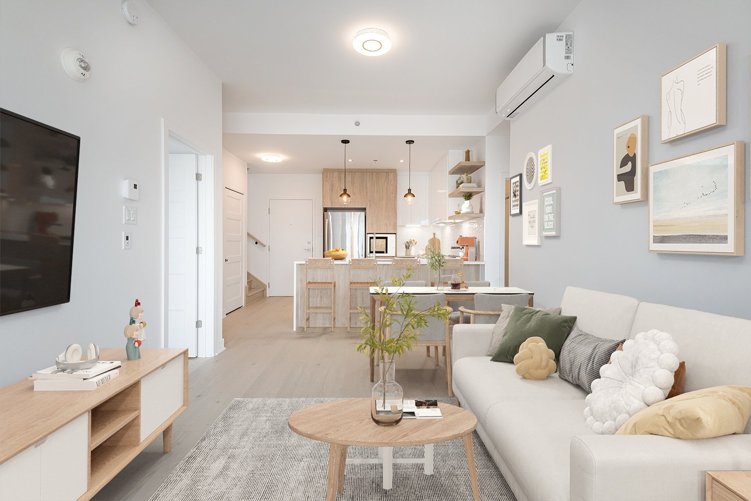 - Open-concept kitchen and living room