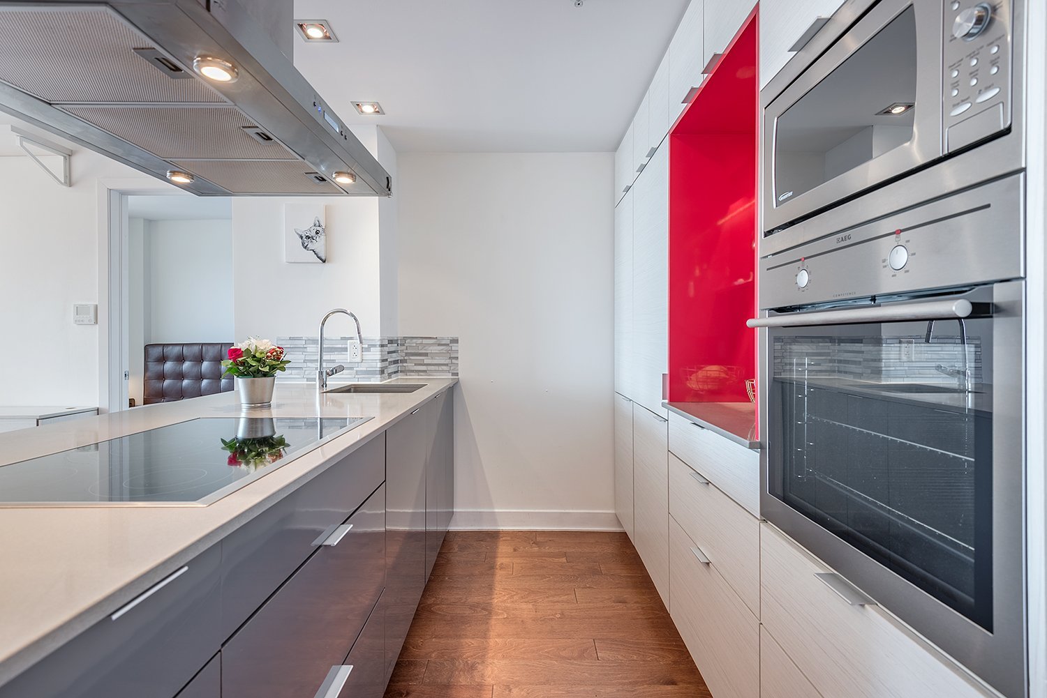 Modern condo in Ville-Marie. Enjoy upscale living in this beautiful condo located in a well-maintained building with stunning common areas. Just a few minutes walk from the metro, this spacious unit offers comfort, style, and a prime location in the heart of the city.