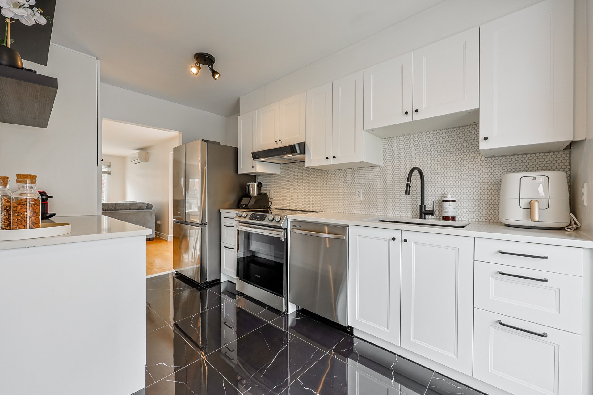 Explore this charming, multi-level townhouse in a condominium setting, nestled in the sought-after Dollard-des-Ormeaux area. With its 3 spacious bedrooms, including a primary bedroom boasting a generous walk-in closet, this home offers a comfortable space for the whole family. The expansive dimensions and hardwood flooring add an elegant touch, while abundant natural light creates a warm atmosphere. Enjoy a spacious upstairs bathroom and a large family room in the basement. The integrated single garage and asphalt driveway offer convenient parking.